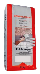 FLEXcement® PLUS is een droge samenstelling die door eenvoudige toevoeging van water een gebruiksklare, sterke bouwlijm met grote flexibiliteit geeft.