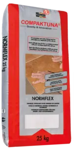 NORMFLEX is een droge samenstelling die door eenvoudige toevoeging van water een gebruiksklare lijm geeft met een verhoogde flexibiliteit.