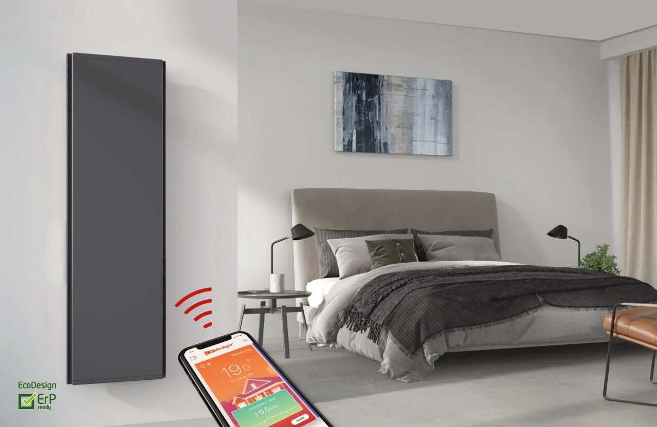 DRL E-Comfort ICON Wifi. Minimalistisch design, een satijnen oppervlak en een dikte van slechts 10 cm. DRL E-Comfort ICON is voorzien van het unieke Dual Therm technology systeem, dat convectiewarmte combineert met stralingswarmte. Door dit duale systeem bent u gegarandeerd van een continue, prettige warmtebeleving. De ICON radiatoren zijn eenvoudig te installeren en te programmeren op het display en via wifi.