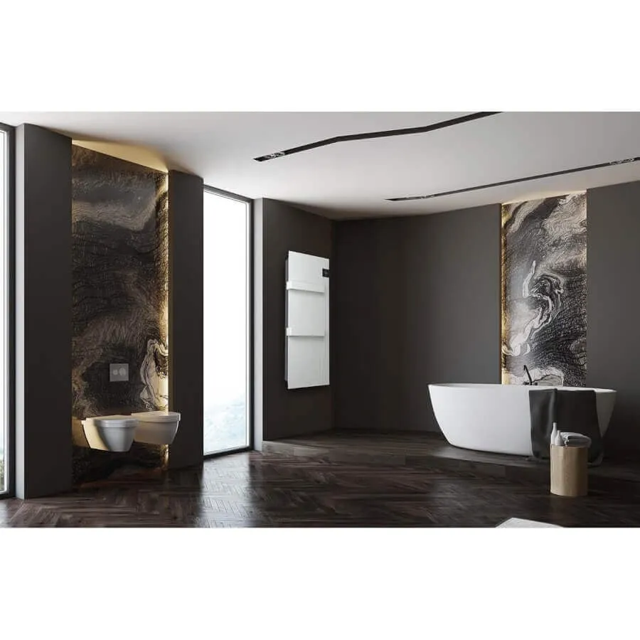 ONSEN radiatoren zijn leverbaar in 2 kleuren, in mat gestructureerd wit RAL 9003 of antraciet grijs RAL 7024, in vermogen 750 Watt, inclusief 2 fraaie handdoekhouders