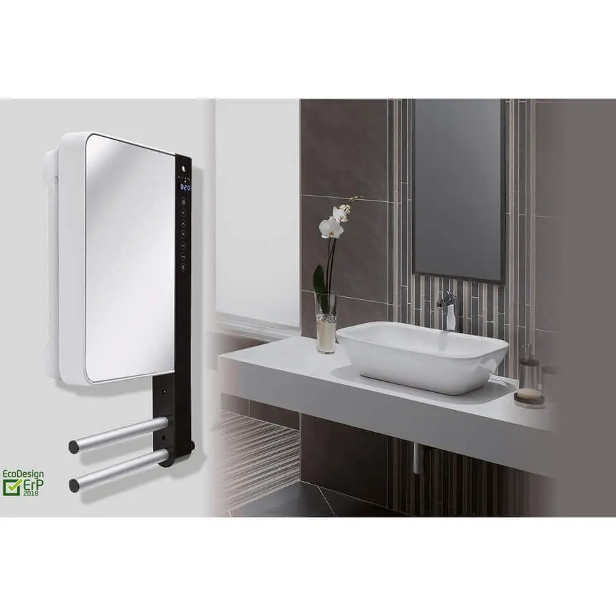 Met een bouwdiepte van slechts 11 cm en een design ontwerp, geeft de digitale Fan Heater E-Comfort Aurora WINDY een hi-tech touch aan uw badkamer. Het model WINDY is leverbaar in drie verschillende modellen: WINDY, WINDY 2B met 2 aluminium handdoekhouders en de WINDY VISIO met spiegel en tevens voorzien van 2 aluminium handdoekhouders.