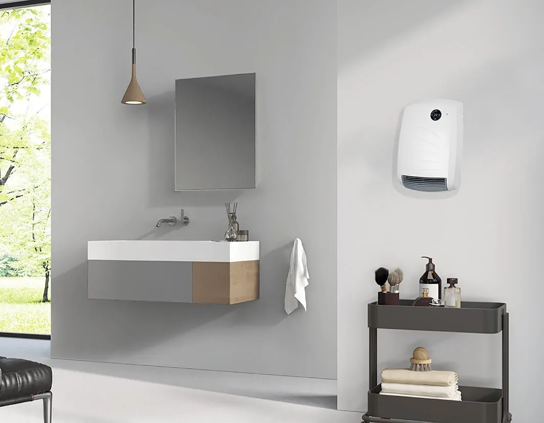 De benedenverdieping warm moeten stoken om de badkamer behaaglijk warm te krijgen is nu verleden tijd.  Met DRL elektrische Fan Heaters wordt de badkamer razendsnel verwarmd tot een comfortabele temperatuur.