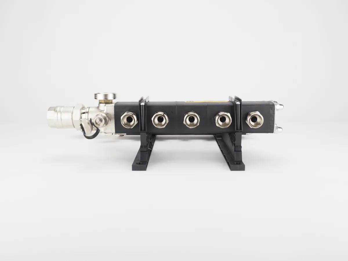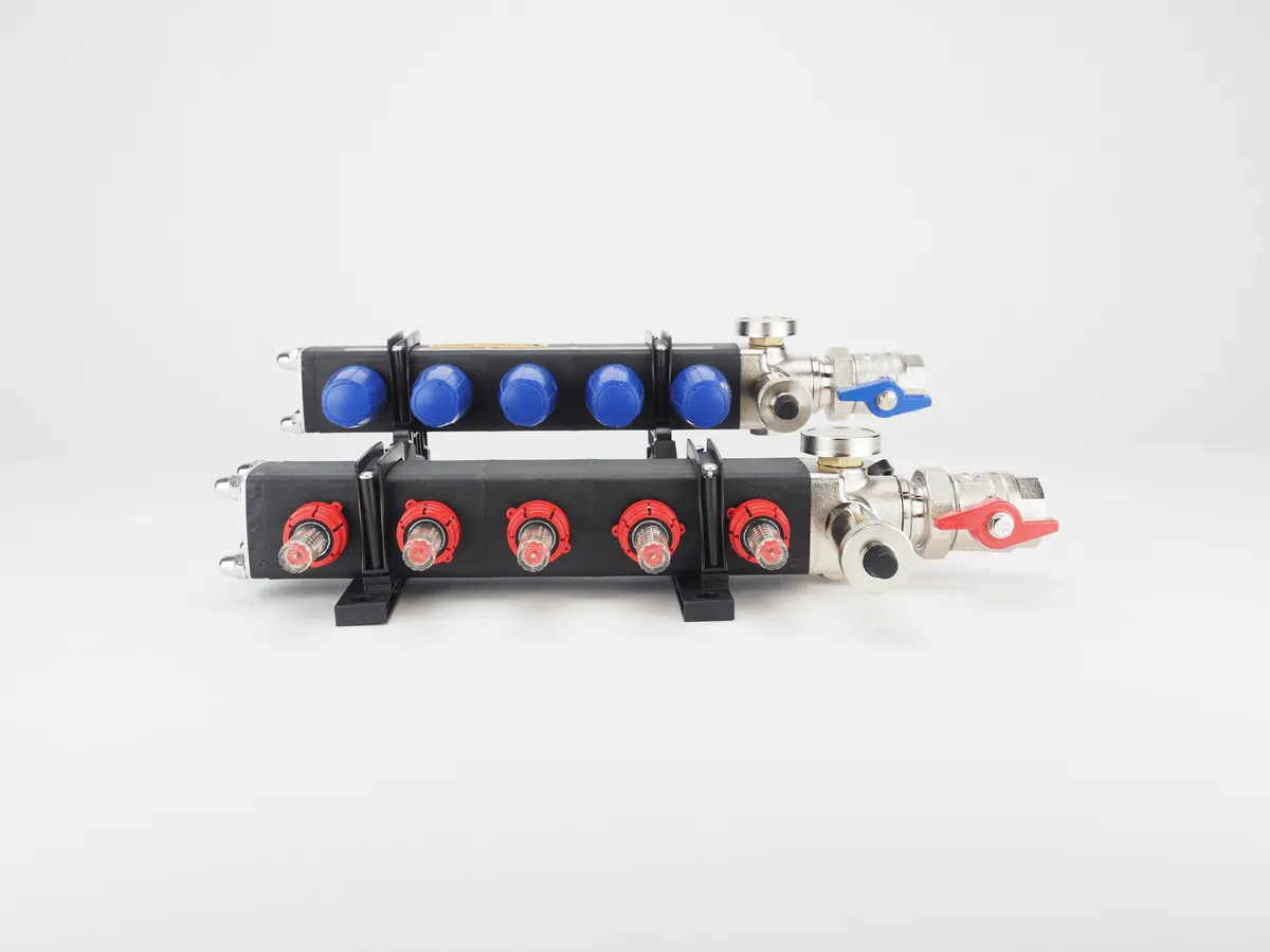 De losse elementen zijn vervaardigd van een met glasvezel versterkte Polyamide kunststof die zeer geschikt is voor hoge maar ook lage temperaturen. De elementen hebben een dubbelwandige opbouw waardoor automatisch een isolatielaag wordt gevormd. Dit maakt deze verdeler uitermate geschikt voor verwarmen maar ook voor koelen. Door deze isolatielaag ontstaat nagenoeg geen condensvorming op de verdeler. Deze verdeler wordt steeds vaker toegepast in combinatie met een warmtepomp, die in de winter verwarmd en in de zomer koelt. Standaard is deze verdeler voorzien van 1€ Kogelkranen, 2 automatische ontluchters en 2 vulaftapkranen.