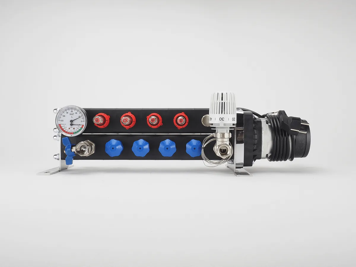 De Magnum kunststof professional verdeler is modulair opgebouwd en voorzien van een energiezuinige pomp, thermo/manometer, inregelbare flowmeters en geïntegreerde ventielen (waarop actuators geplaatst kunnen worden).