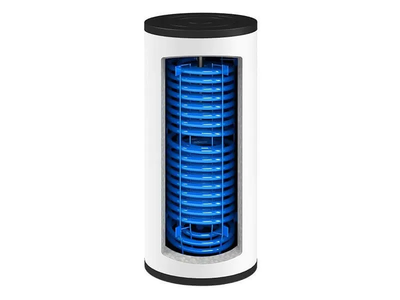 De indirect gestookte boiler gebruikt de warmte van de warmtepomp om tapwater te verwarmen. Deze boiler heeft een extra grote spiraal van 4 m².