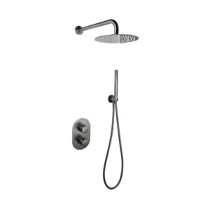 Geef uw badkamer een moderne en industriële uitstraling met de Saniful Doucheset inbouw in gun metal! Deze set bevat een box thermostaat, muurbevestiging en een 25cm ronde douchekop, ontworpen om uw douche-ervaring naar een hoger niveau te tillen.