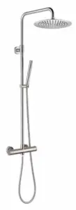 De Saniful Doucheset opbouw thermostatisch in hoogte verstelbaar rond 25 cm RVS biedt u de perfecte oplossing voor een comfortabele en luxe douche-ervaring.