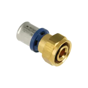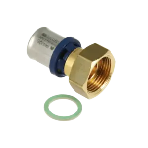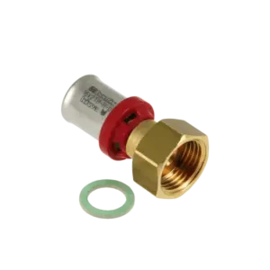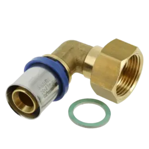 2-delige kniekoppeling met losse klingerit ring. Binnendraad x alu-pers.