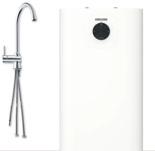 Compleet met Stiebel Eltron kraan MES Chroom. Bij de installatie is geen inlaatcombinatie nodig.