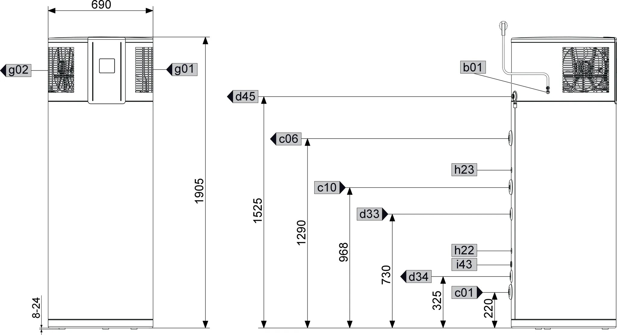 • De variant SOL kan ook geïnstalleerd worden met een thermische zonne-installatie of een externe warmteopwekker (bijvoorbeeld een cv-ketel)