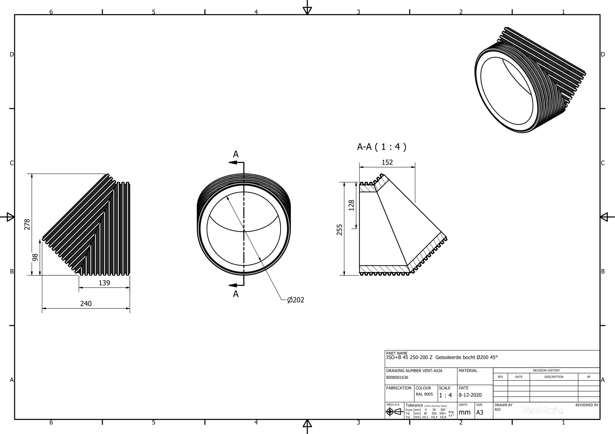 Vent-Axia ISO+B 45 250-200 Z / Geisoleerde bocht Ø200 45°