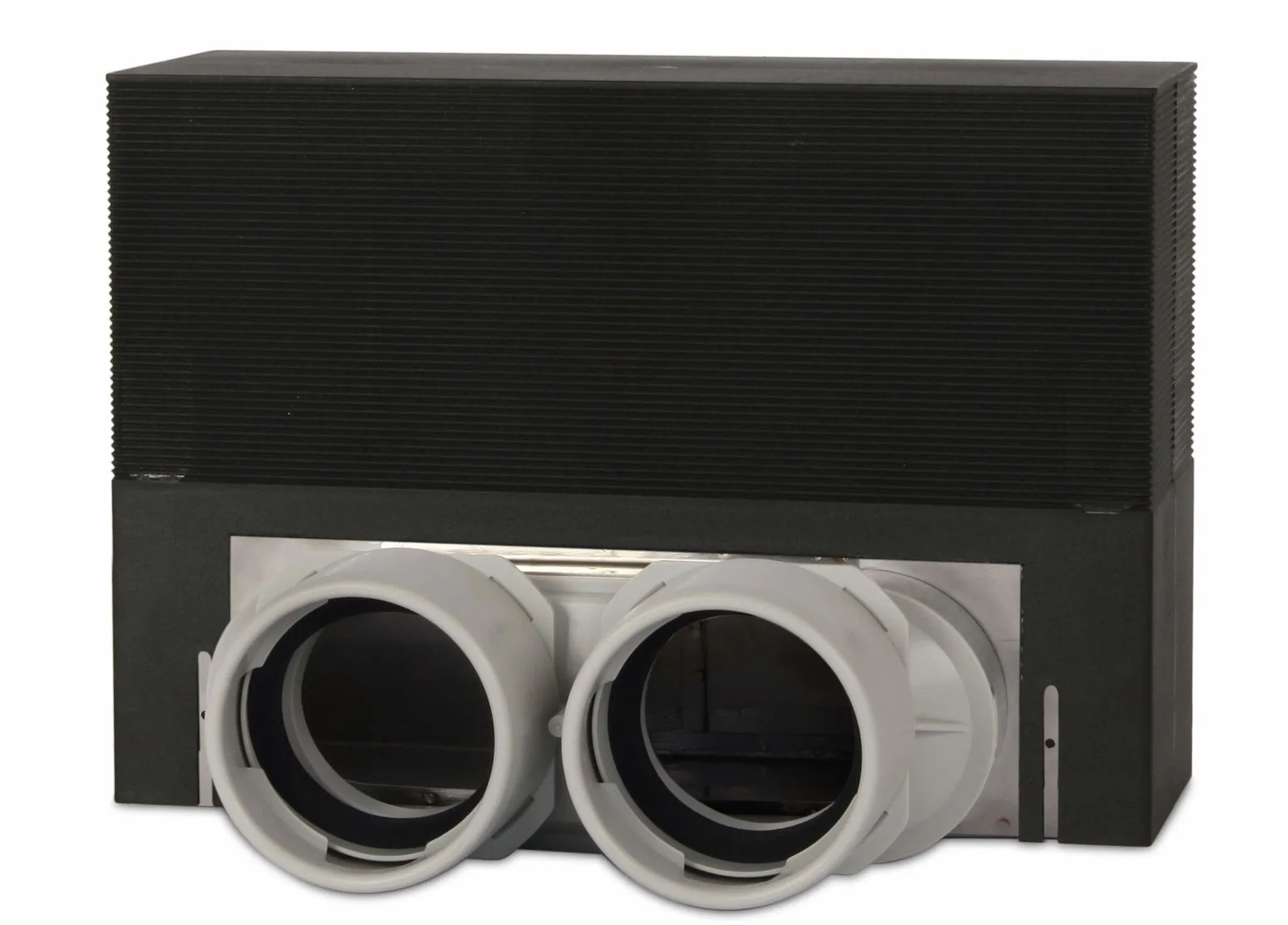 2x Ø75mm ventilatieslang aansluiting. Inclusief 1 afdichtdop Ø75mm.