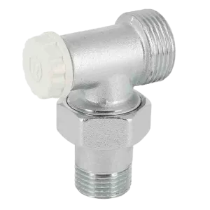 Radiatorkraan haaks met koppeling. Binnendraad x buitendraad.