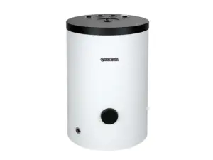 De indirect gestookte boiler gebruikt de warmte van de warmtepomp om tapwater te verwarmen.