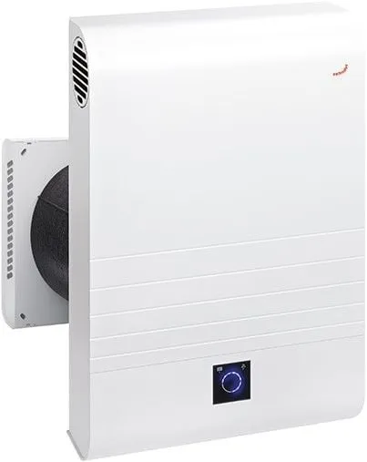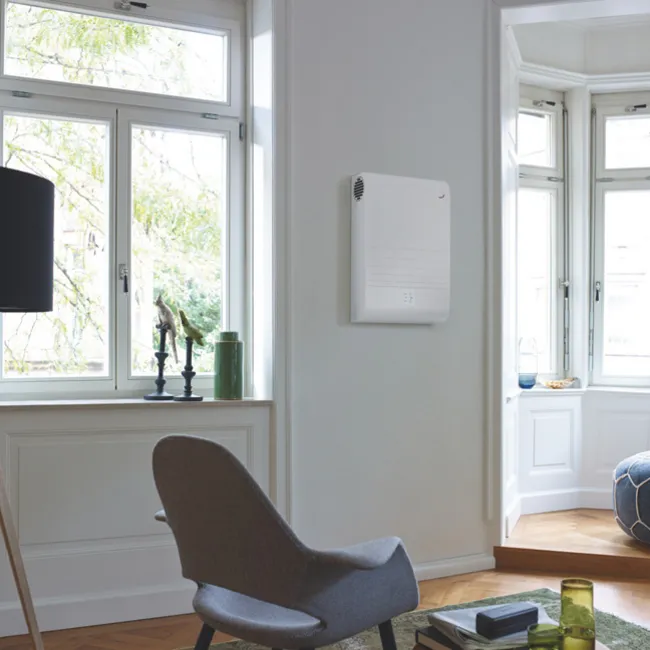 Een decentrale WTW-unit met een capaciteit tot 60m3/h is uitgerust met een enthalpiewisselaar die zowel warmte als vocht terugwint. Dankzij deze wisselaar komt er geen condens vrij, waardoor de buitenkant schoon en droog blijft.